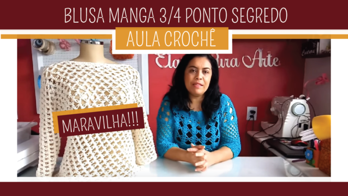 Aperte o play para aprender blusa em crochê ponto segredo ( manga 3/4 ) passo a passo: