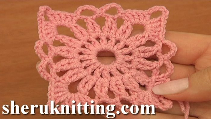 Aprenda fazer motivo de crochê quadrado pequeno rosa passo a passo: